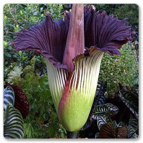 Dziwidło olbrzymie pochodzi z wilgotnego lasu równikowego sumatry i jak sama jego nazwa wskazuje, zadziwia swoim wyglądem i wielkością. Choć nazwa brzmi intrygująco, adekwatności trudno jej odmówić. Gad ten posiada ogromny kwiat,ktory jest zlozony z lisci kokonnych.ma ogromny rog kwiatny.lodyga tego gatunku jest gruba i krotka. Dziwidło olbrzymie nazywa się nie bez powodu trupim kwiatem. Niedługo odwiedzający ogród będą mogli oglądać rozkwit rośliny.